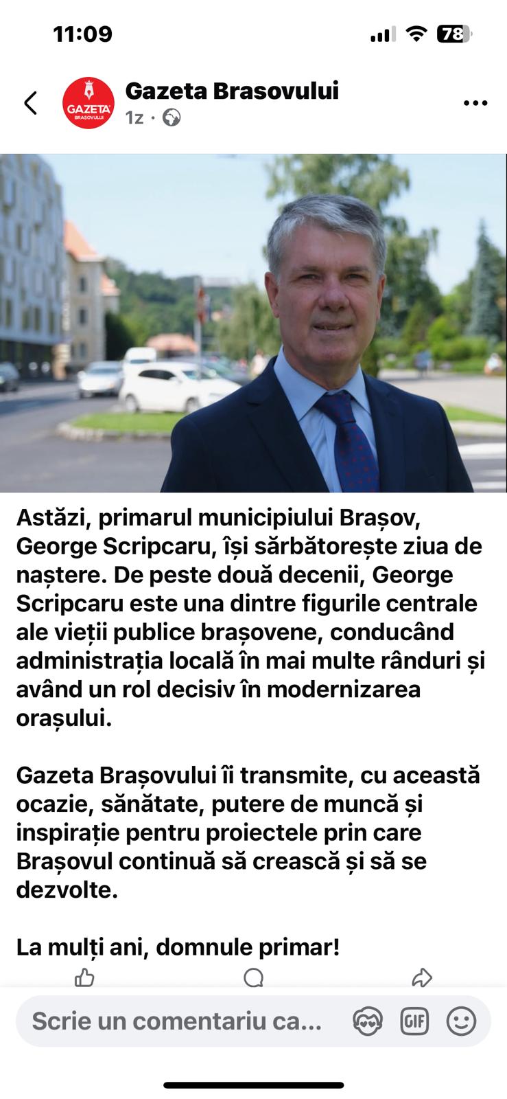 Ieri, primarul municipiului Brașov a avut ziua de naștere. Urări, poze, articole omagiale, like-uri pentru iubitul nostru conducător, mă rog, festin pentru prea slăvitul nostru satrap. Însă de azi, viața brașovenilor a revenit la normal: gropile au rămas, șantierele zac, iar promisiunile stau la păstrare, tot în parcul central, acolo unde clădirea Primăriei veghează ca un pavilion de serbare permanentă. Ni s-a spus că primarul e „figură centrală a vieții publice”. Așa e. Atât de centrală încât s-a înrădăcinat în funcție precum un copac bătrân – dar fără umbră, doar cu ramuri pline de afișe electorale. „Rol decisiv în modernizarea…